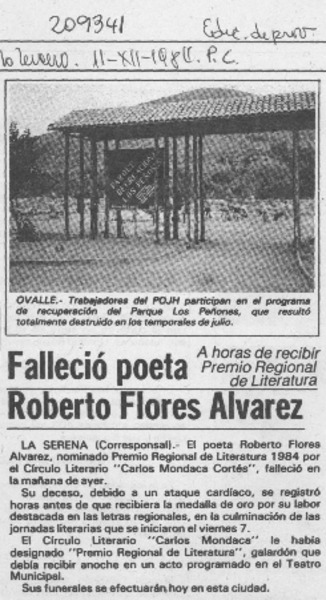 Falleció poeta Roberto Flores Alvarez [artículo].