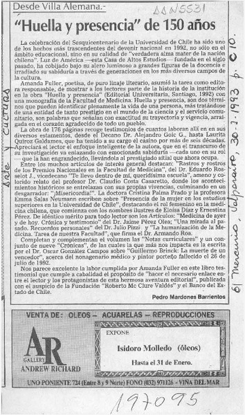"Huella y presencia" de 150 años [artículo] Pedro Mardones Barrientos.