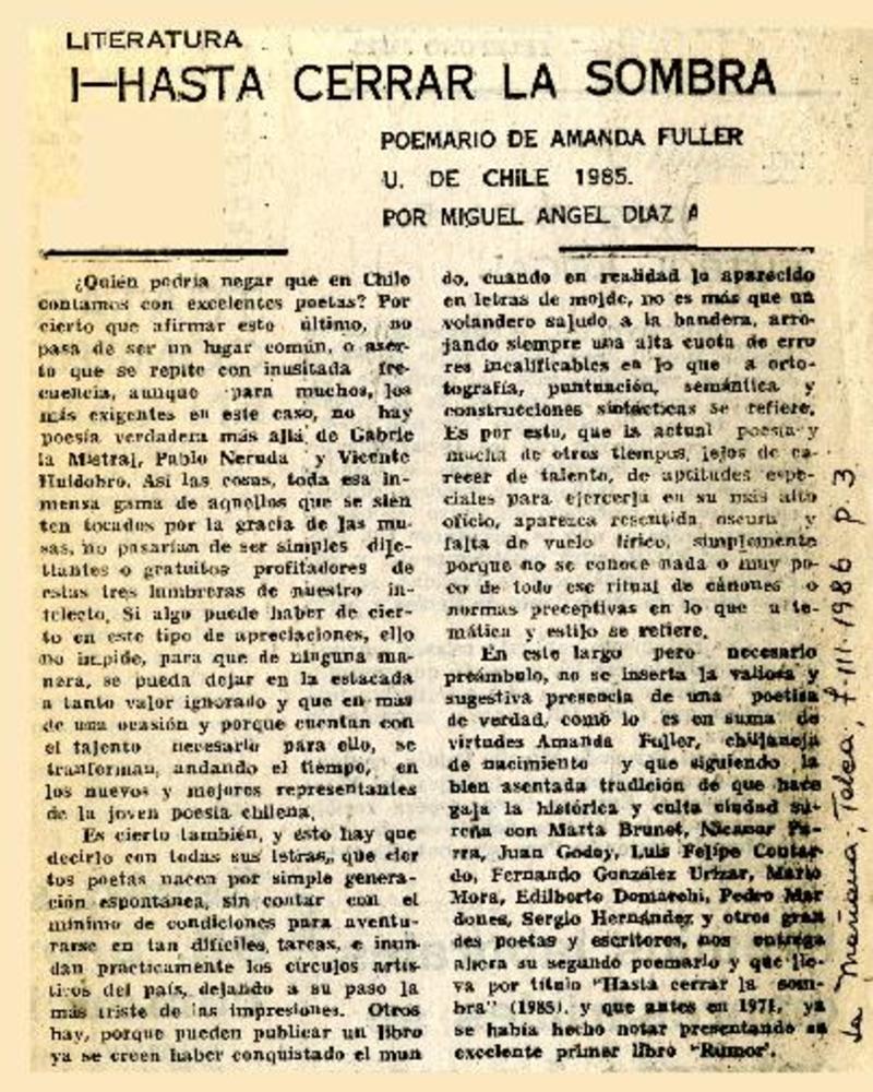 Hasta cerrar la sombra [artículo] Miguel Angel Díaz A.