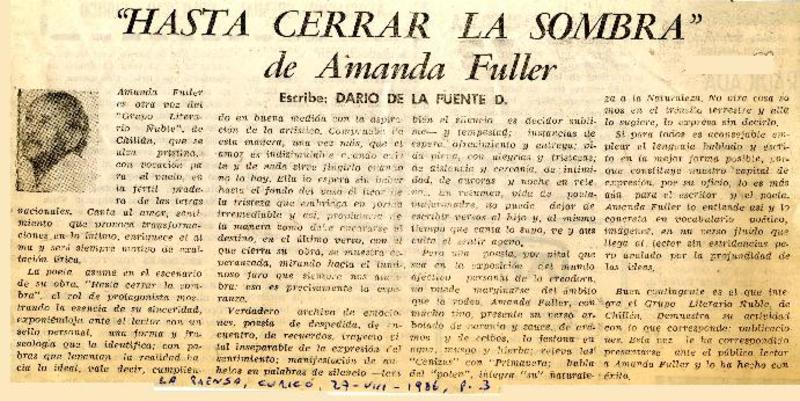 "Hasta cerrar la sombra" [artículo] Darío de la Fuente.