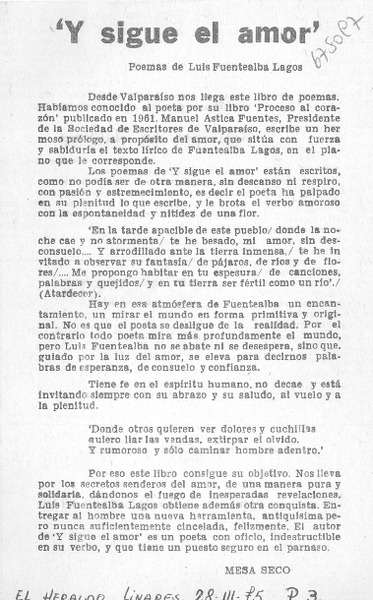"Y sigue el amor" [artículo] Horacio Hernández A.