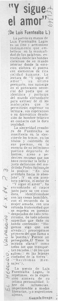 "Y sigue el amor" [artículo] Gonzalo Drago.
