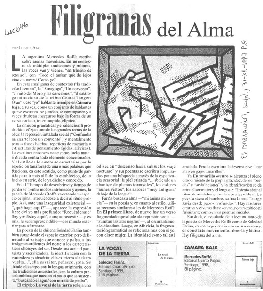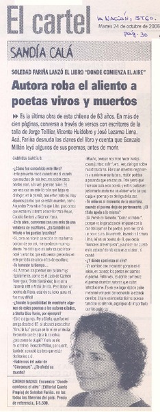 Soledad Fariña lanzó el libro "Donde comienza el aire" autora roba el aliento a poetas vivos y muertos [artículo] : Gabriela García B.