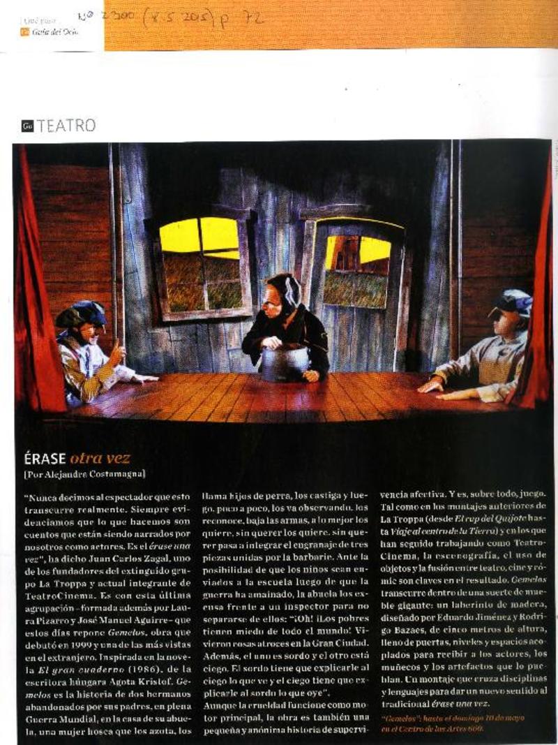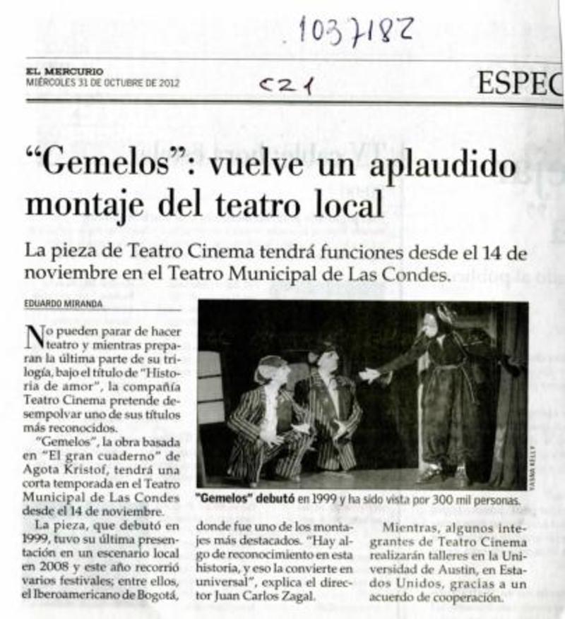 "Gemelos": vuelve un aplaudido montaje del teatro local [artículo] Eduardo Miranda