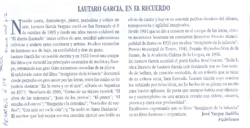 Lautaro García en el recuerdo [artículo] José Vargas Badilla.
