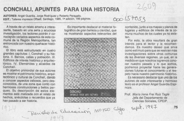Guardia, Angel - Conchalí : apuntes para una historia - PERAGALLO, ROBERTO - PARRAGUEZ, JORGE - CONCHALI, APUNTES PARA UNA HISTORIA