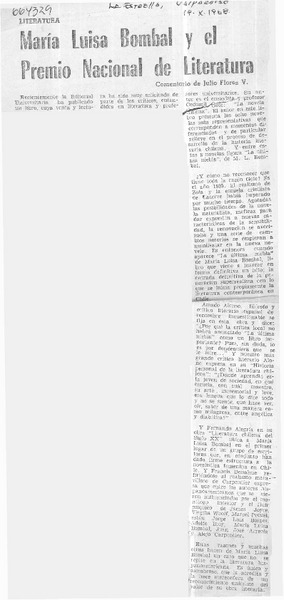 María Luisa Bombal y el premio nacional de literatura [artículo] Julio Flores V.