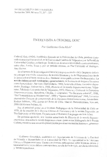Entrevista a Cedomil Goic (entrevista) [artículo] Guillermo Gotschlich.