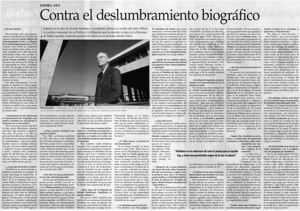 Autores chilenos - Huidobro, Vicente - Goić, Cedomil - Entrevista