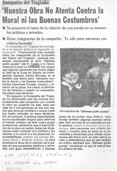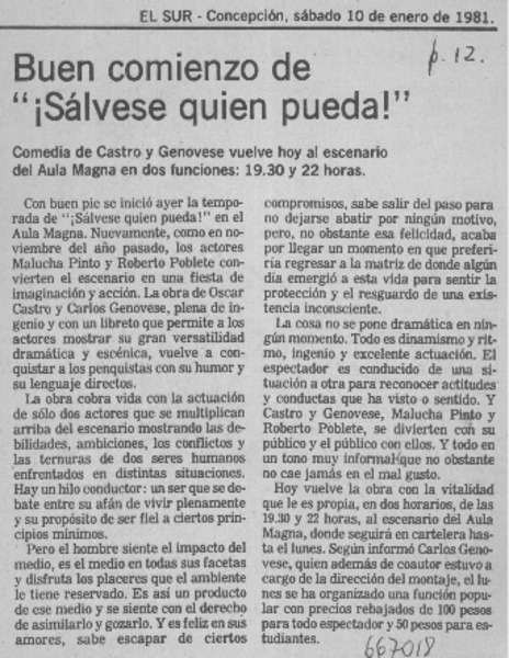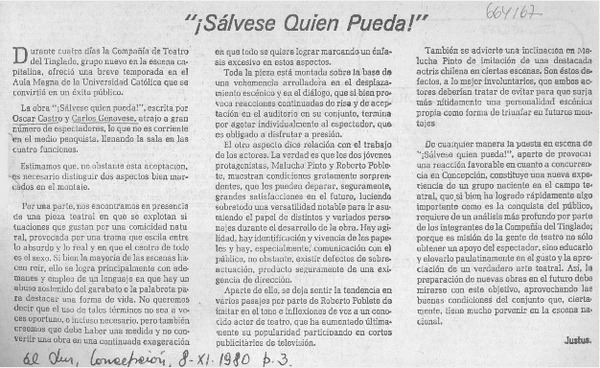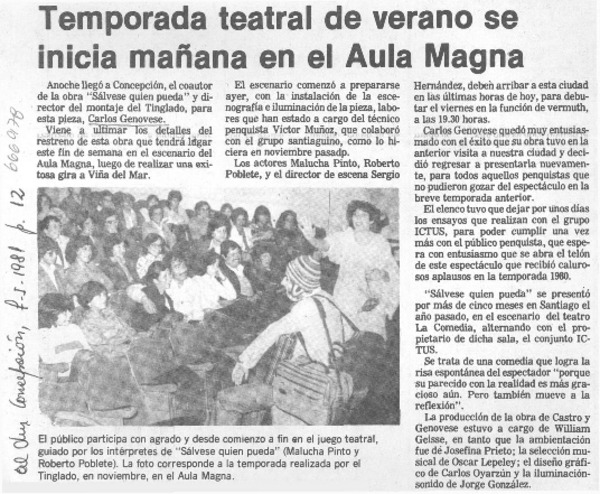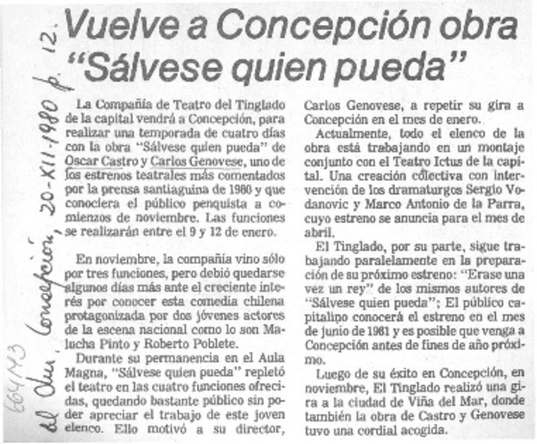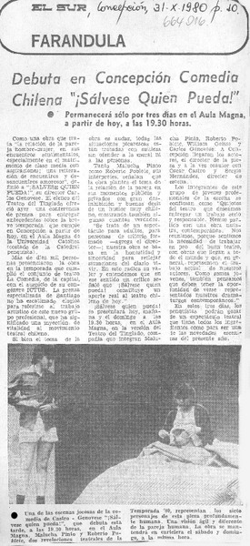 Vuelve a Concepción obra "Sálvese quien pueda". [artículo]