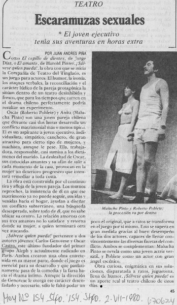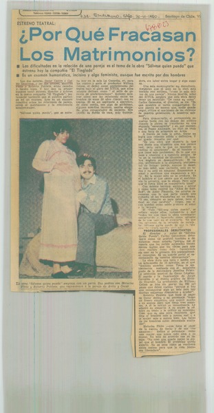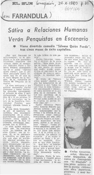Sátira a relaciones humanas varán penquistas en escenario. [artículo]