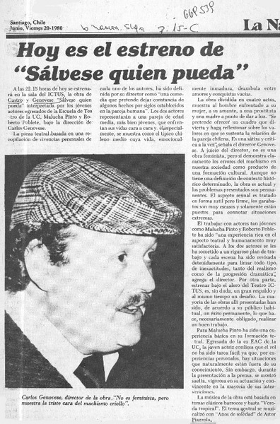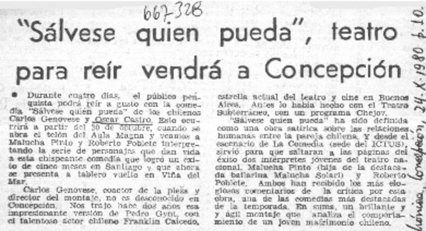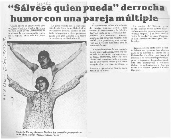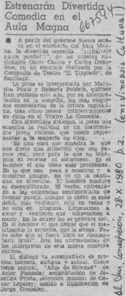 Debuta en Concepción comedia chilena "¡Sálvese quien pueda!". [artículo]