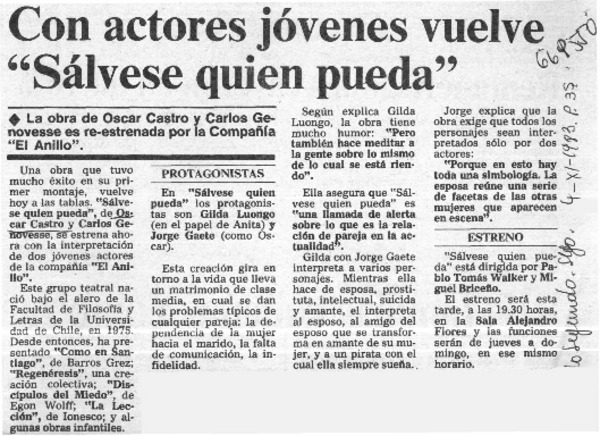 Castro, Oscar - Autores chilenos - Sálvese quien pueda - Genovese, Carlos
