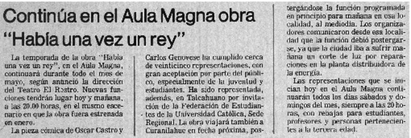 Continúa en el Aula Magna obra "Había una vez un rey". [artículo]