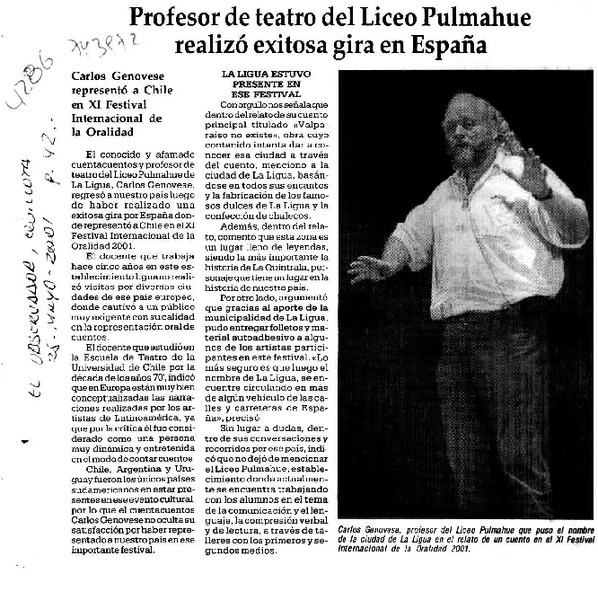Profesor de teatro del Liceo Pulmahue realizó exitosa gira en España [artículo]