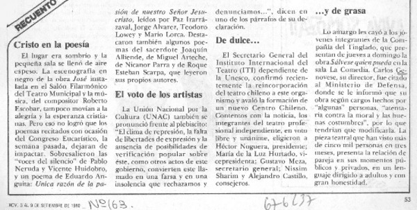 El Rostro y Del Bosque en la jornada teatral. [artículo]