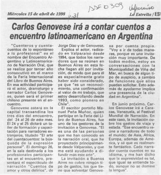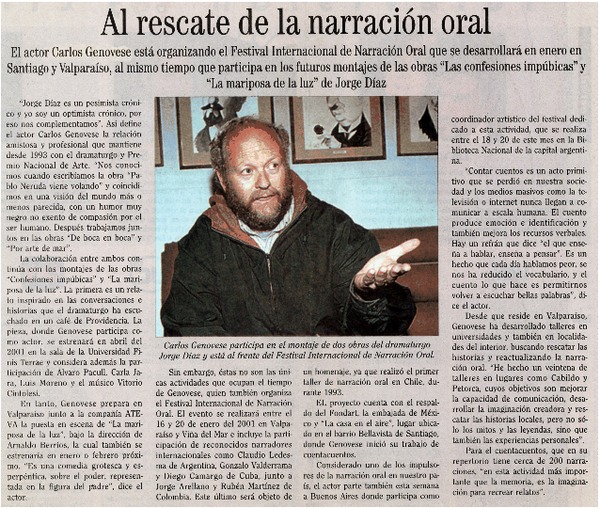 Carlos Genovese va a contar sus cuentos a Festival de Narración en Buenos Aires [artículo].