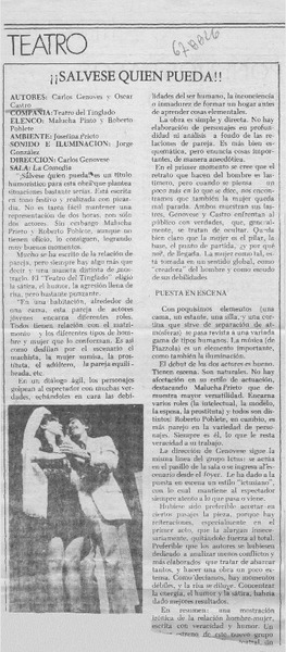 "Sálvese quien pueda", funciones a tablero vuelto en Concepción [artículo].