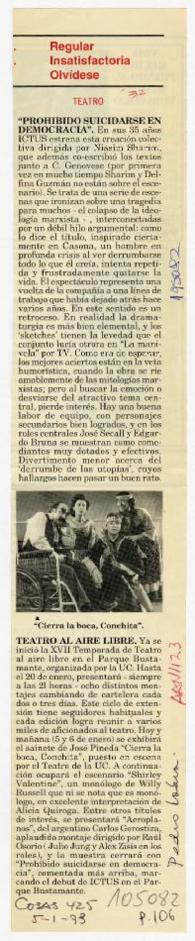 El Ictus se las manda con obra "Prohibido suicidarse en democracia". [artículo]