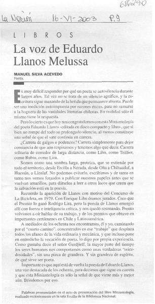 La voz de Eduardo Llanos Melussa [artículo] Manuel Silva Acevedo.