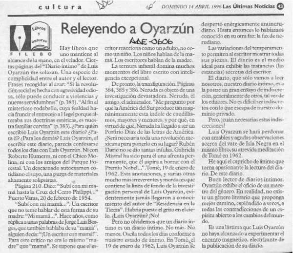 El Diario de Luis Oyarzún viene volando [artículo] Antonio Avaria.