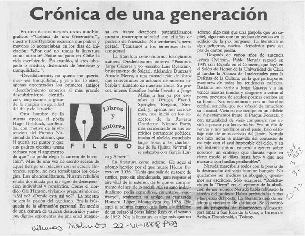CRONICA DE UNA GENERACION - OYARZUN, LUIS