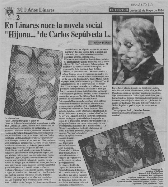 En Linares nace la novela social "Hijuna --" de Carlos Sepúlveda L. [artículo] Emma Jauch.