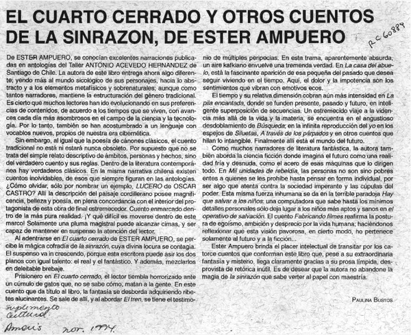 El cuarto cerrado y otros cuentos de la sinrazón, de Ester Ampuero [artículo] Paulina Bustos.