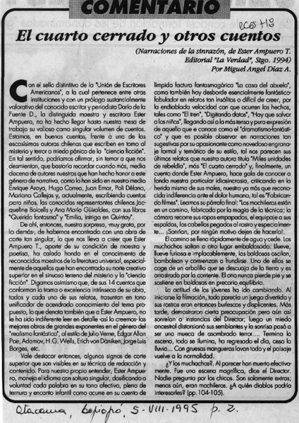 El cuarto cerrado y otros cuentos [artículo] Miguel Angel Díaz.