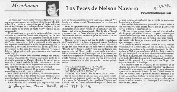 Los peces de Nelson Navarro [artículo] Antonieta Rodríguez París.