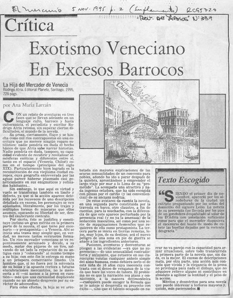 Exotismo veneciano en excesos barrocos [artículo] Ana María Larraín.