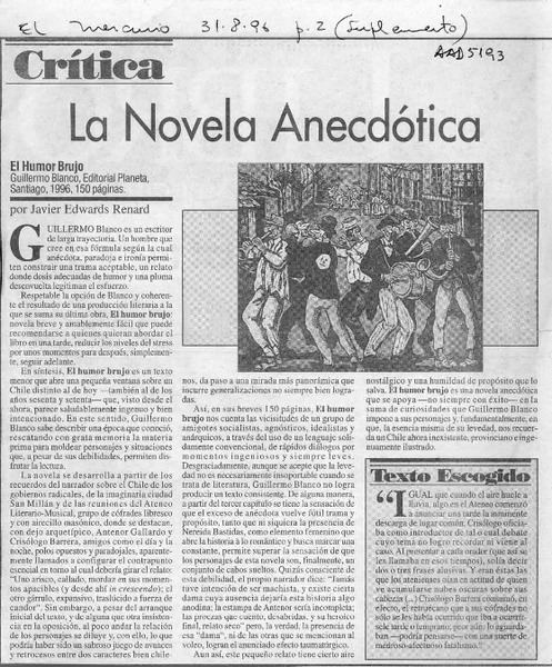 La novela anecdótica [artículo] Javier Edwards Renard.