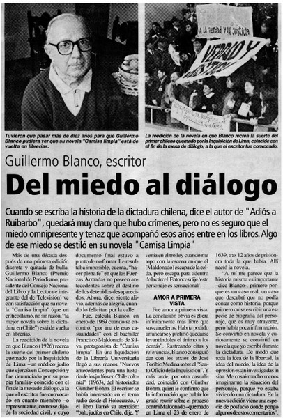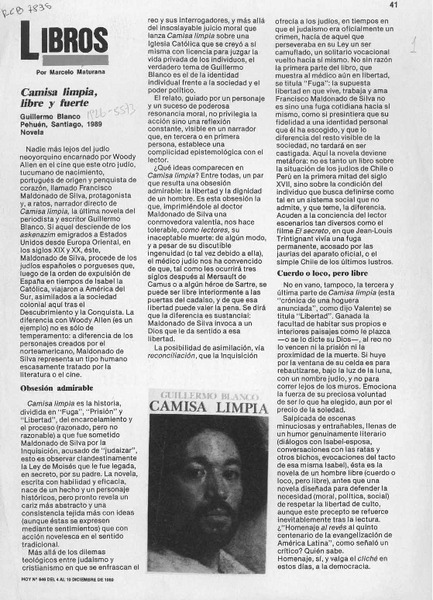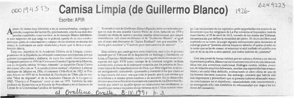 Camisa limpia (de Guillermo Blanco) [artículo] Apir.
