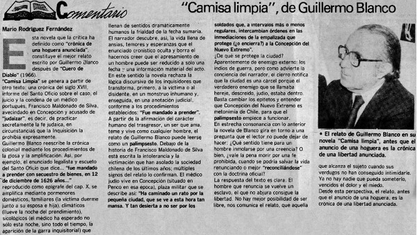 "Camisa limpia", de Guillermo Blanco [artículo] Mario Rodríguez Fernández.