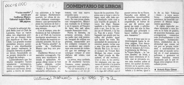 "Vecina amable" [artículo] Antonio Rojas Gómez.