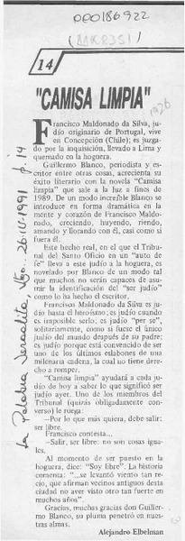 "Camisa limpia" [artículo] Alejandro Elbelman.