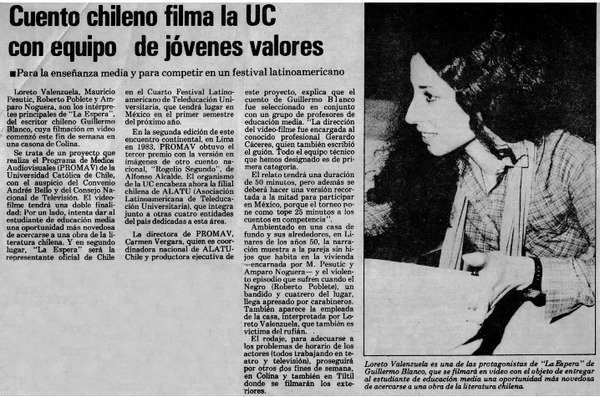 Cuento chileno filma la UC con equipo de jóvenes valores [artículo].