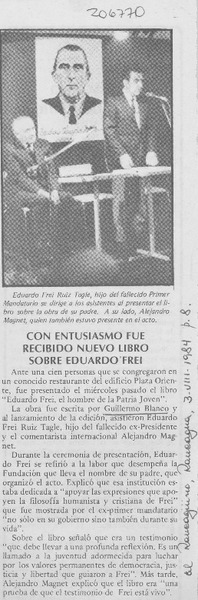 Con entusiasmo fue recibido nuevo libro sobre Eduardo Frei [artículo].