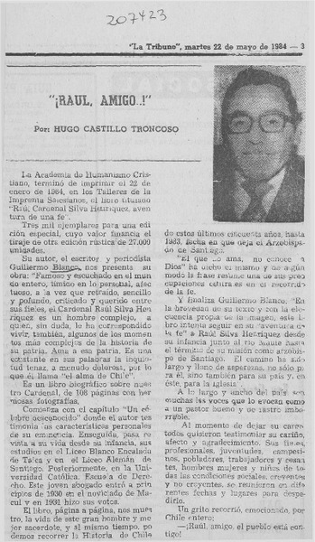 Raúl, amigo! [artículo] Hugo Castillo Troncoso.