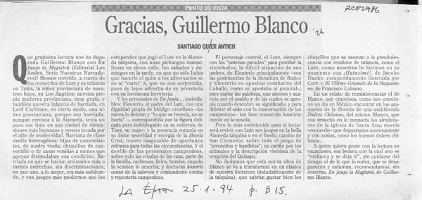 Gracias, Guillermo Blanco [artículo] Santiago Quer Antich.