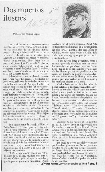 Dos muertos ilustres [artículo] Marino Muñoz Lagos.