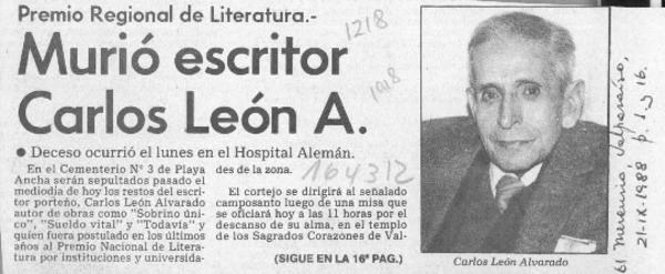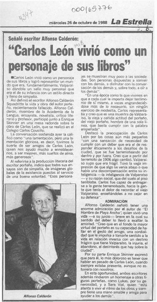 "Carlos León vivió como un personaje de sus libros" [artículo].