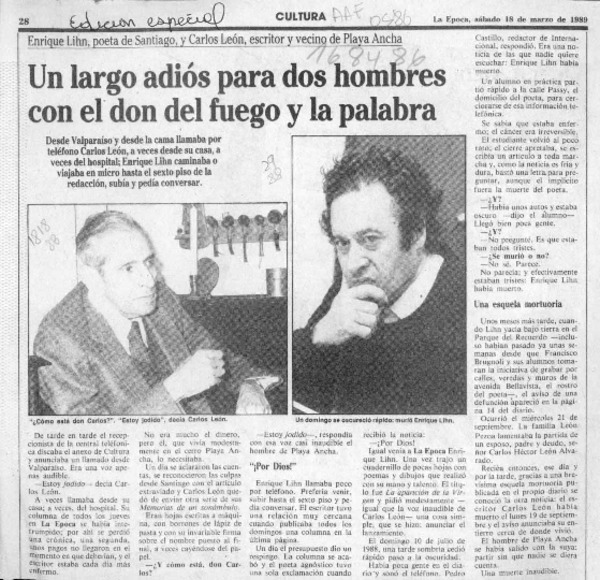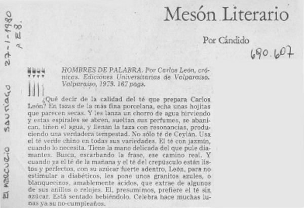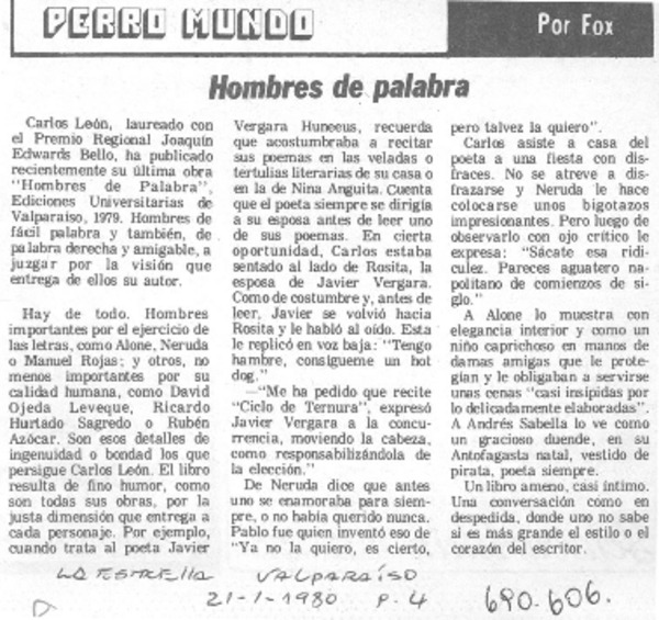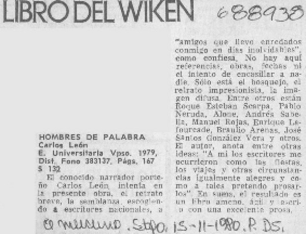 Carlos León, "Hombres de palabra" [artículo] Hernán del Solar.