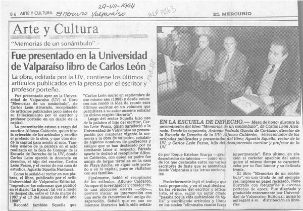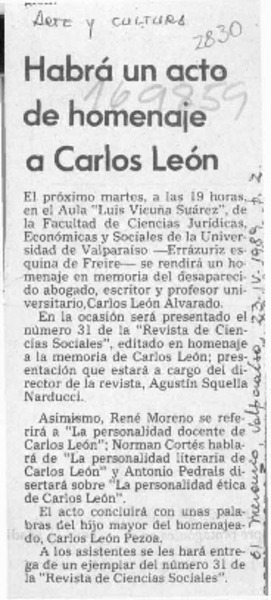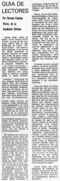 Carlos León en la memoria [artículo] Soledad Valenzuela.