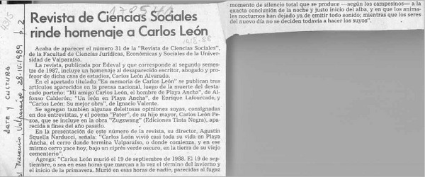 Revista de Ciencias Sociales rinde homenaje a Carlos León [artículo].