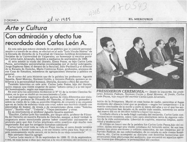 Con admiración y afecto fue recordado don Carlos León A. [artículo].