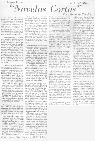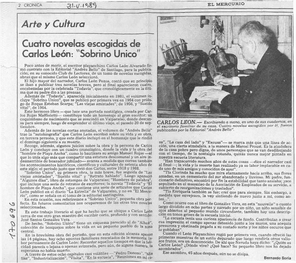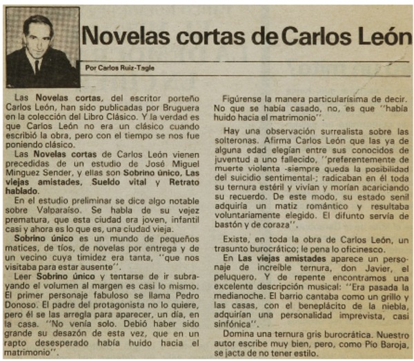 Cuatro novelas escogidas de Carlos León, "Sobrino único" [artículo] Bernardo Soria.
