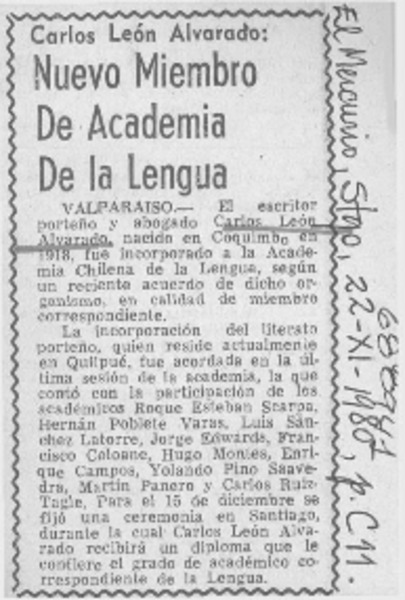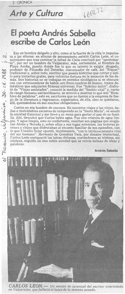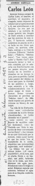 El poeta Andrés Sabella escribe de Carlos León [artículo] Andrés Sabella.