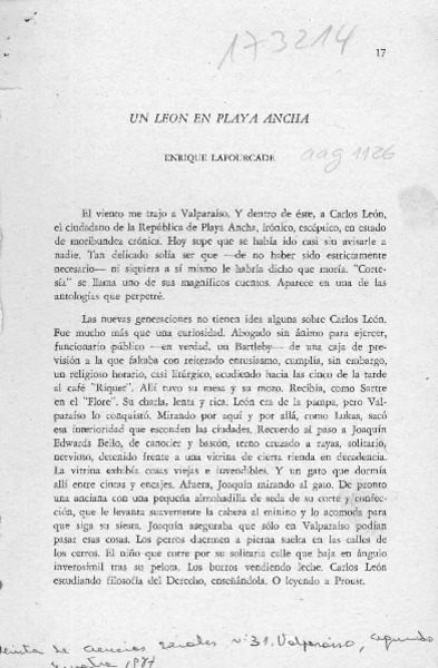Un león en Playa Ancha [artículo] Enrique Lafourcade.