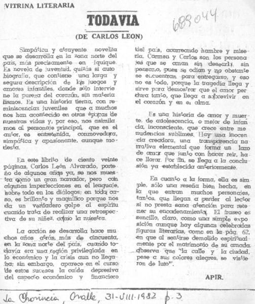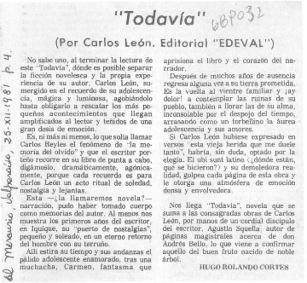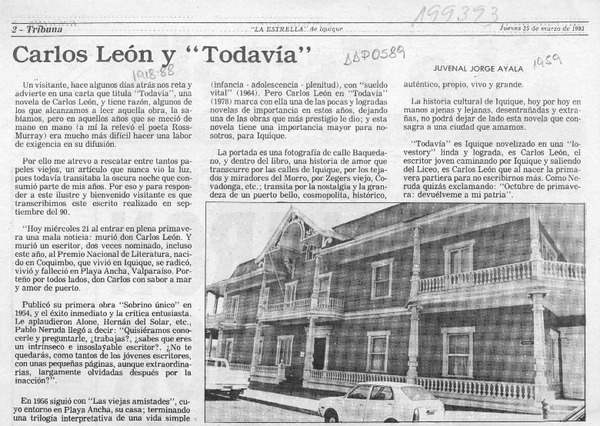 Carlos León y "Todavía" [artículo] Juvenal Jorge Ayala.